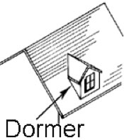 Dormer: A small structure projecting from a sloped roof, usually with a window.