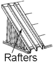 Rafters: The supporting framing to which a roof deck is attached.