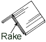 Rake: The inclined edge of a roof over a wall.