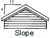 Slope: Measured by rise in inches for each 12 inches of horizontal run: A roof with a 4-in-12 slope rises 4 inches for every foot of horizontal distance.